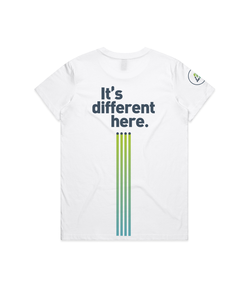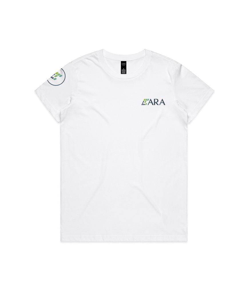 Our signature tee carries a message from inside ARA’s culture—It’s different here—expressing how we care, share and dare. Available in white or navy, with men’s and women’s cuts for a comfortable, everyday fit.